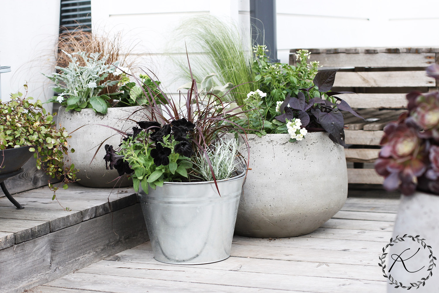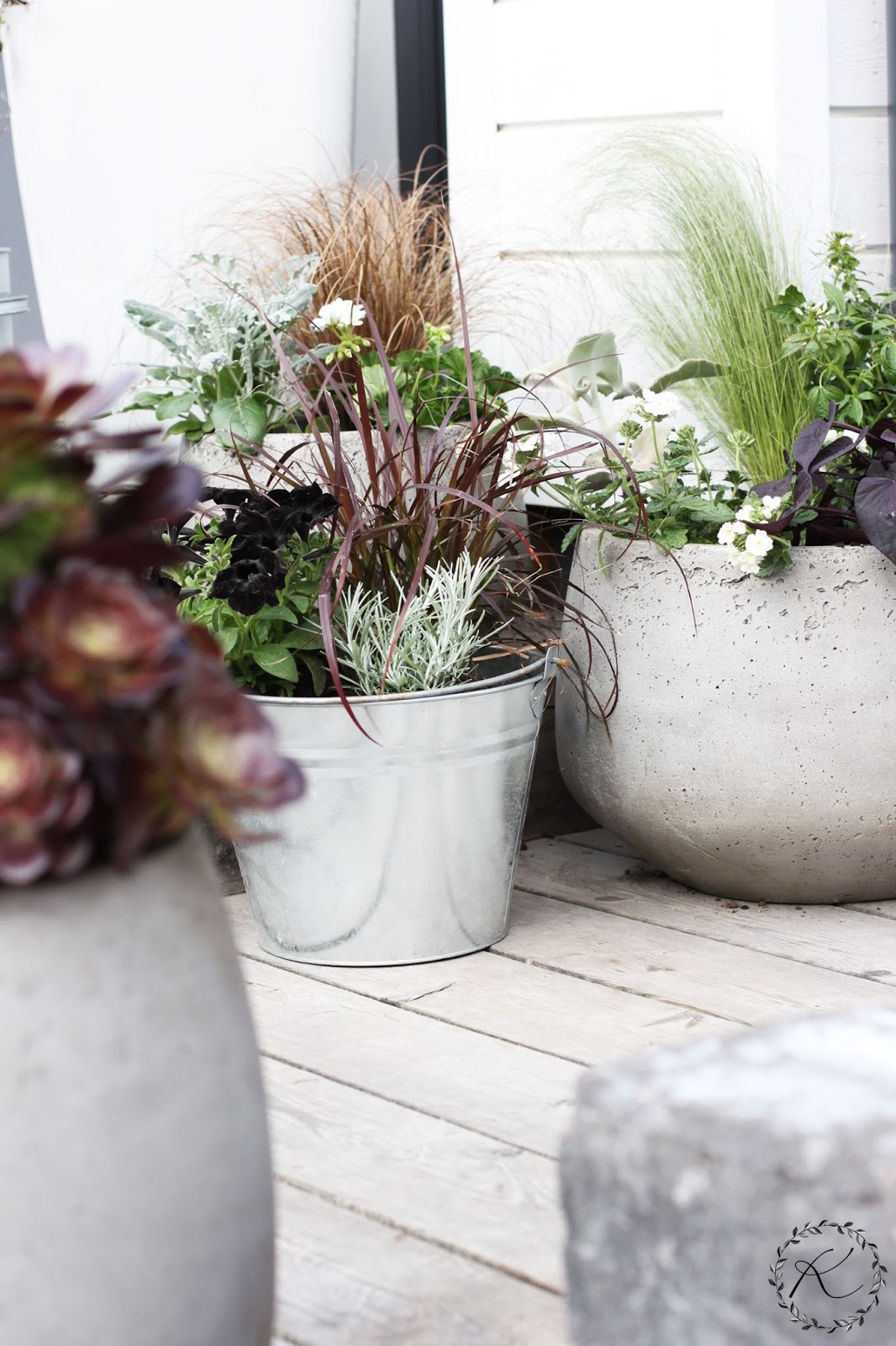 Olen vuosien saatossa tykästynyt aina vain enemmän ja enemmän vihreisiin, hopeisiin ja punaisiin lehtiin kukkien sijaan. Erilaiset heinät, kasvien lehtimuodot ja erilaiset kasvutavat viehättävät. Aina täytyy toki hieman kukkiviakin olla, enkä usko että niistä koskaan luopuisin. Mutta niin ne omat kesäkukkamieltymykset elävät ja muuttuvat.