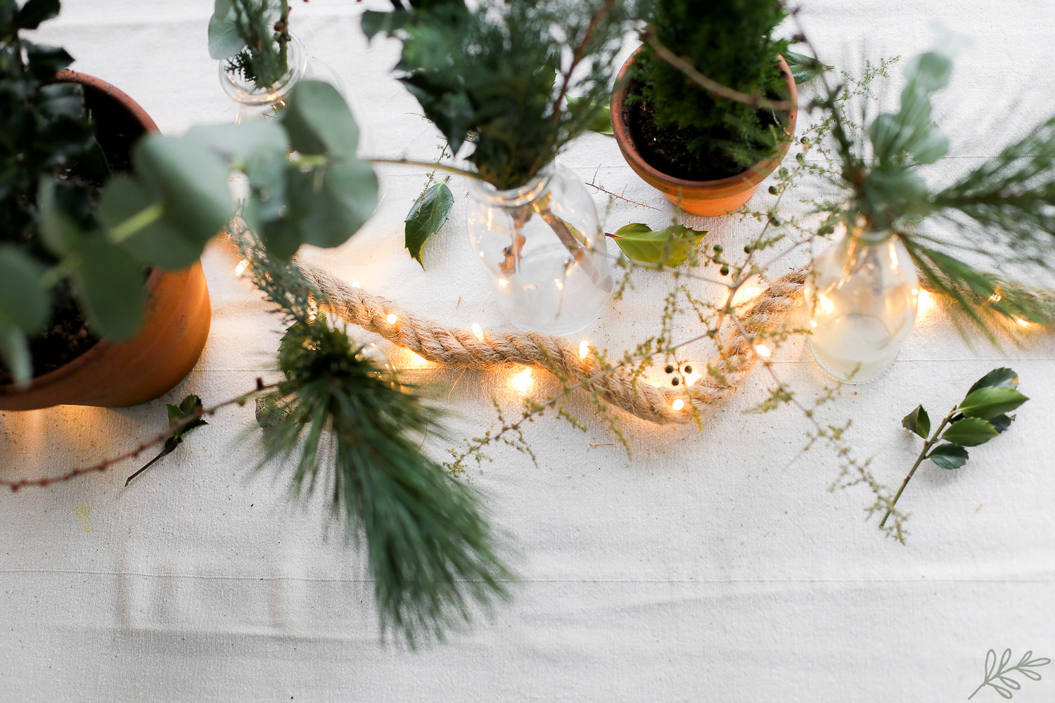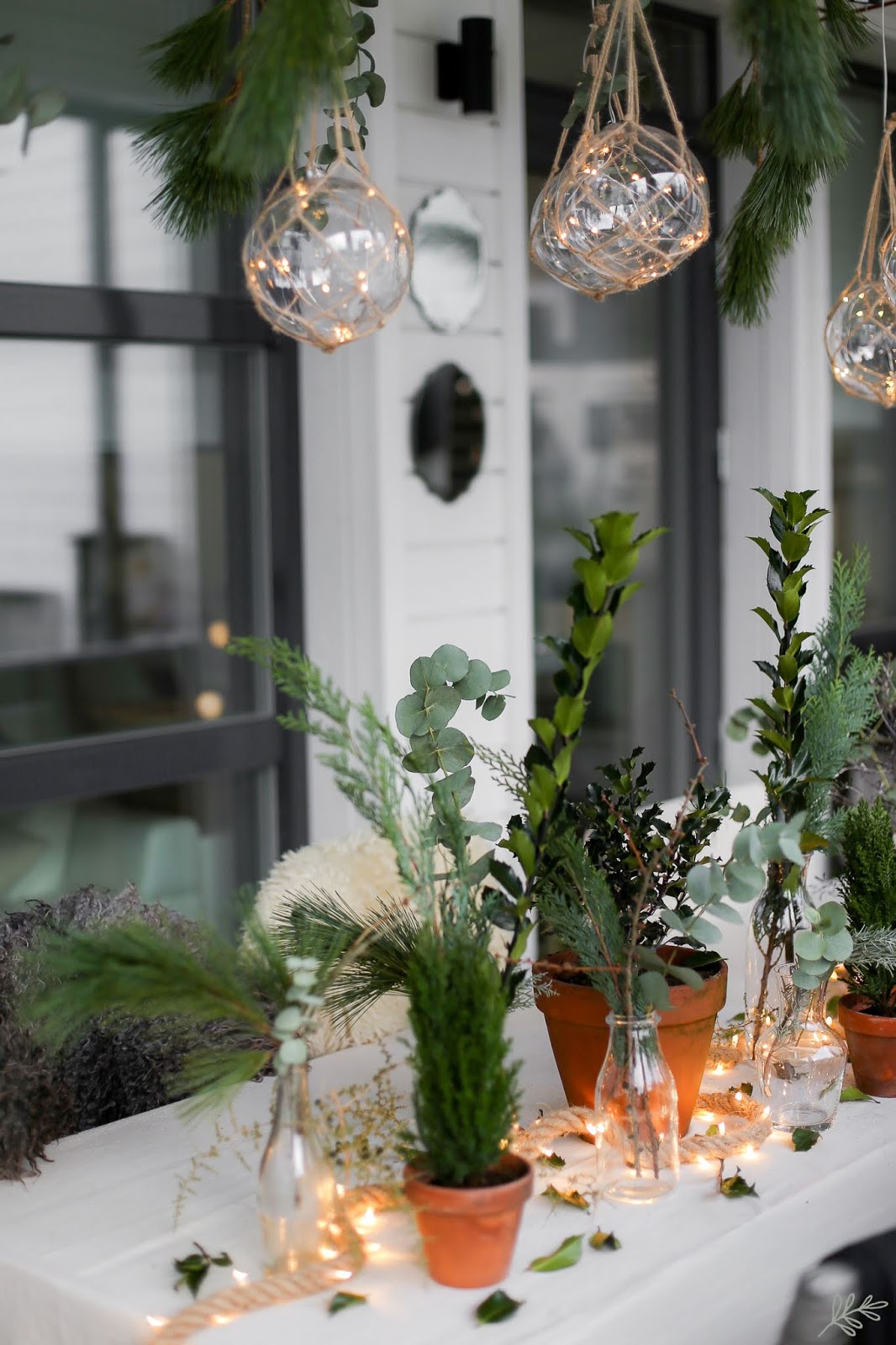 Jouluistutuksissa oli käytetty runsaasti viherkasveja. Mikään tässäkään ei huuda ja alleviivaa joulua, mutta sopii silti juuri tähän sesonkiin mainiosti.