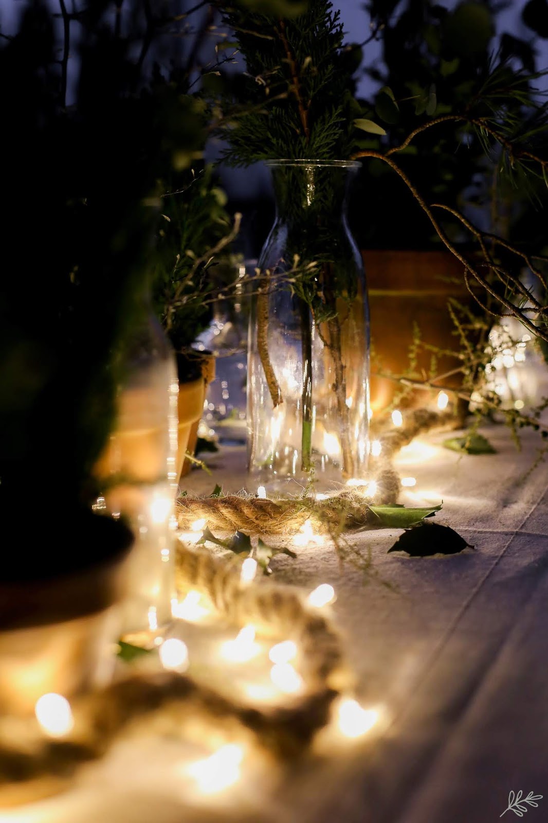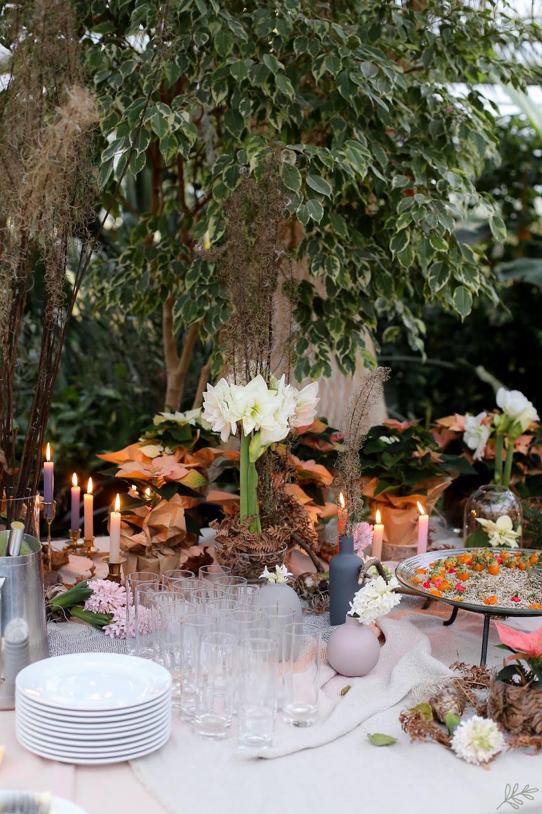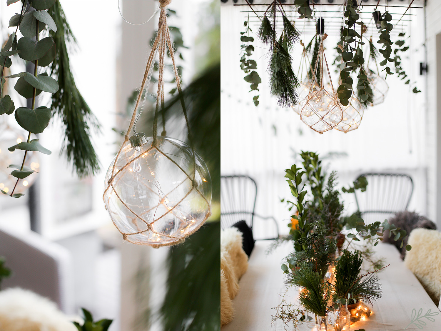 Onko vähän cooli joulukoristelu? Katossa on ristikko, josta roikkuu sammalpalloja, joulupalloja, jouluisia kattokruunuja, viherkasveja ja havuamppeleita. Tämä oli huikean hieno paikanpäällä – toivottavasti välittyy myös kuvista!