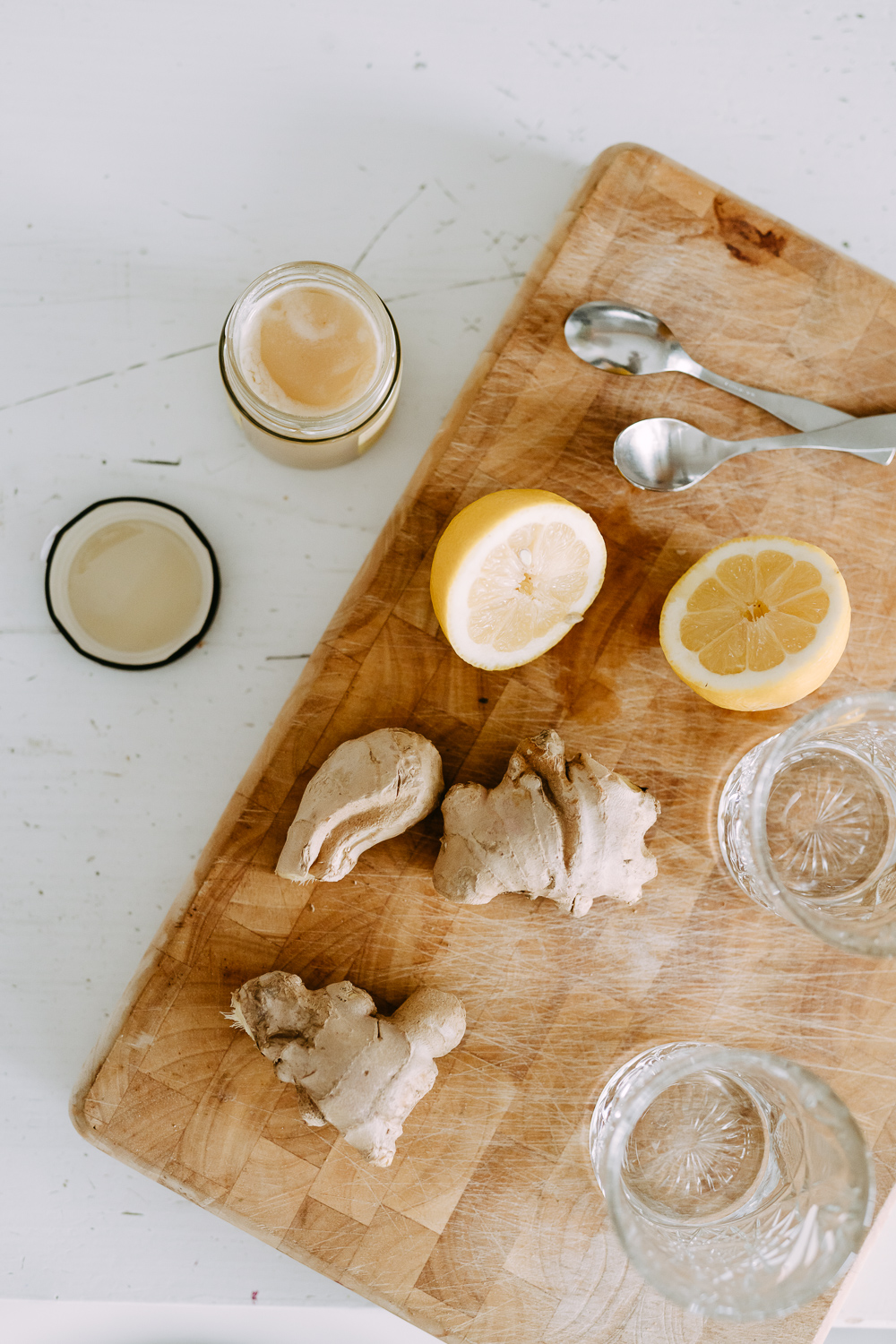 Lämpimän inkiväärisen juoman valmistan yksinkertaisesti vain kuorimalla ja pilkkomalla tai raastamalla inkivääristä ohuita siivuja. Laitan ne kuppiin ja puristan sitruunasta hieman mehua mukaan. Lämmin vesi päälle ja lusikallinen hunajaa mukaan. Sekoitus ja lohtujuoma on valmis!