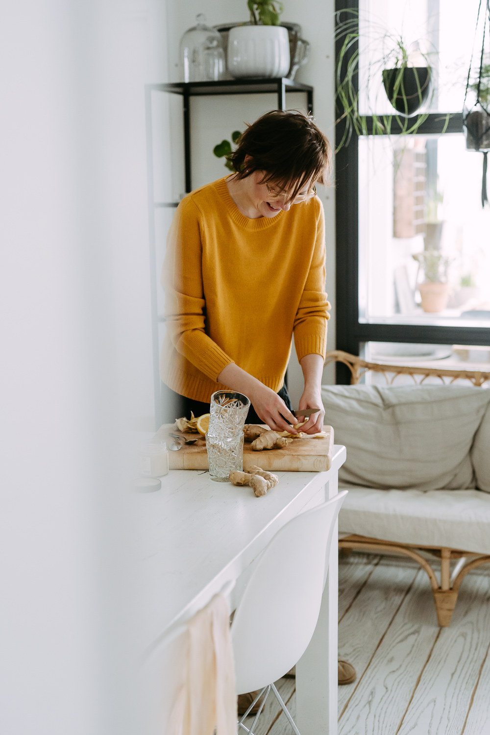 Pidän inkiväärin raikkaan kirpsakasta mausta. Lisään sitä hyvin usein smoothieen, raastan ja puristan mehun omenamehun joukkoon, mutta eniten teen siitä lämmintä inkiväärijuomaa. Se on minun lohtujuomani.