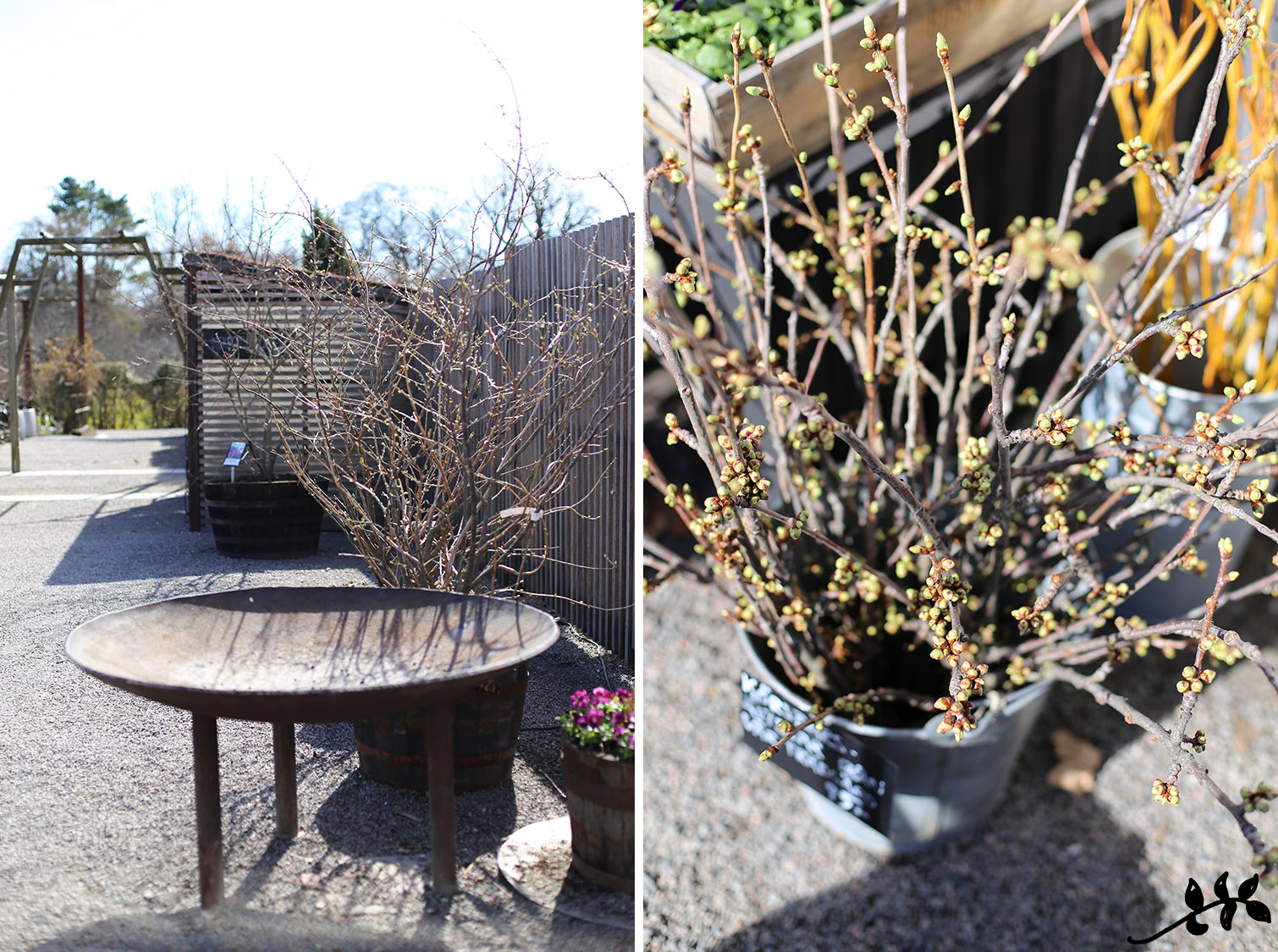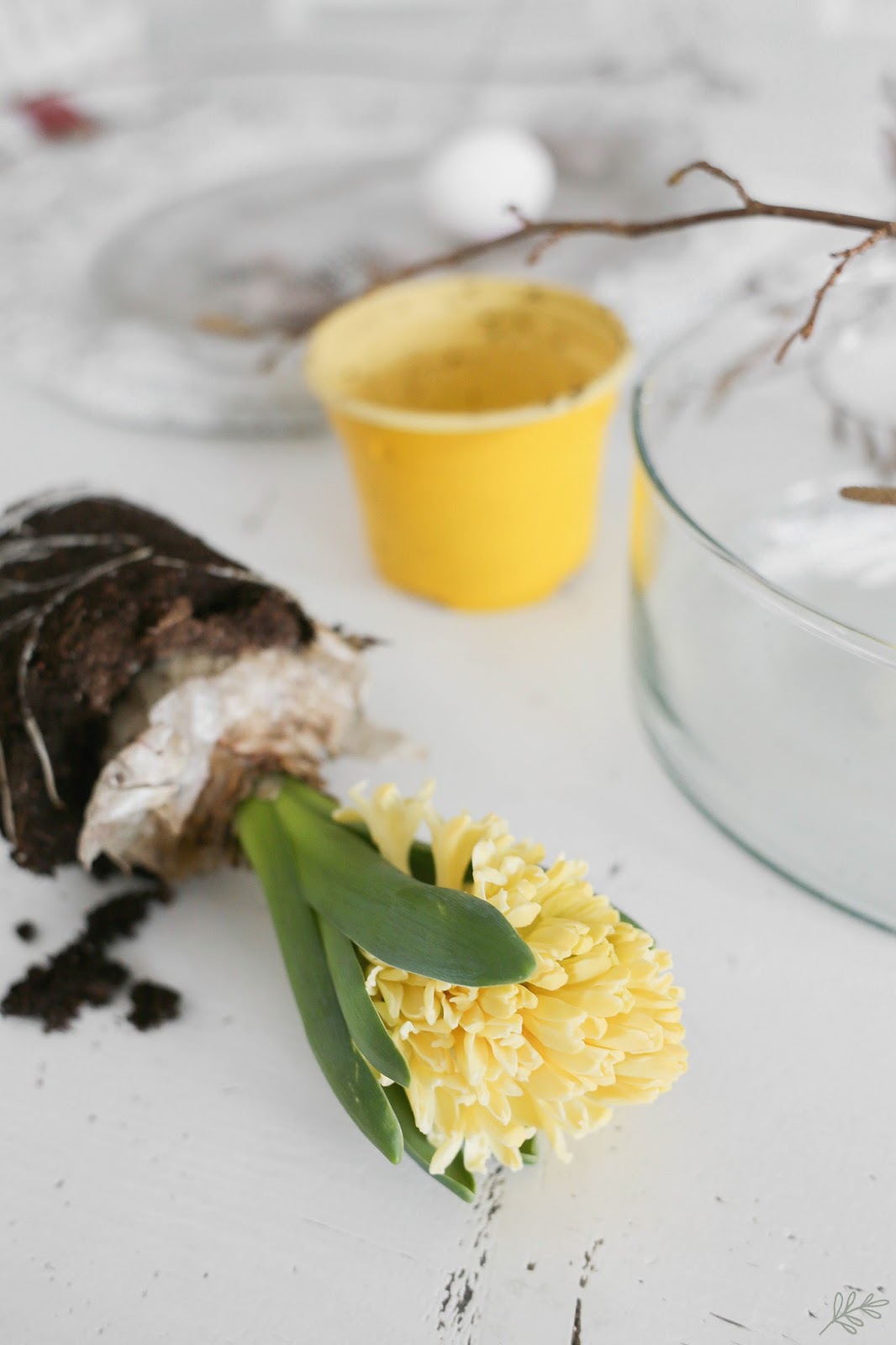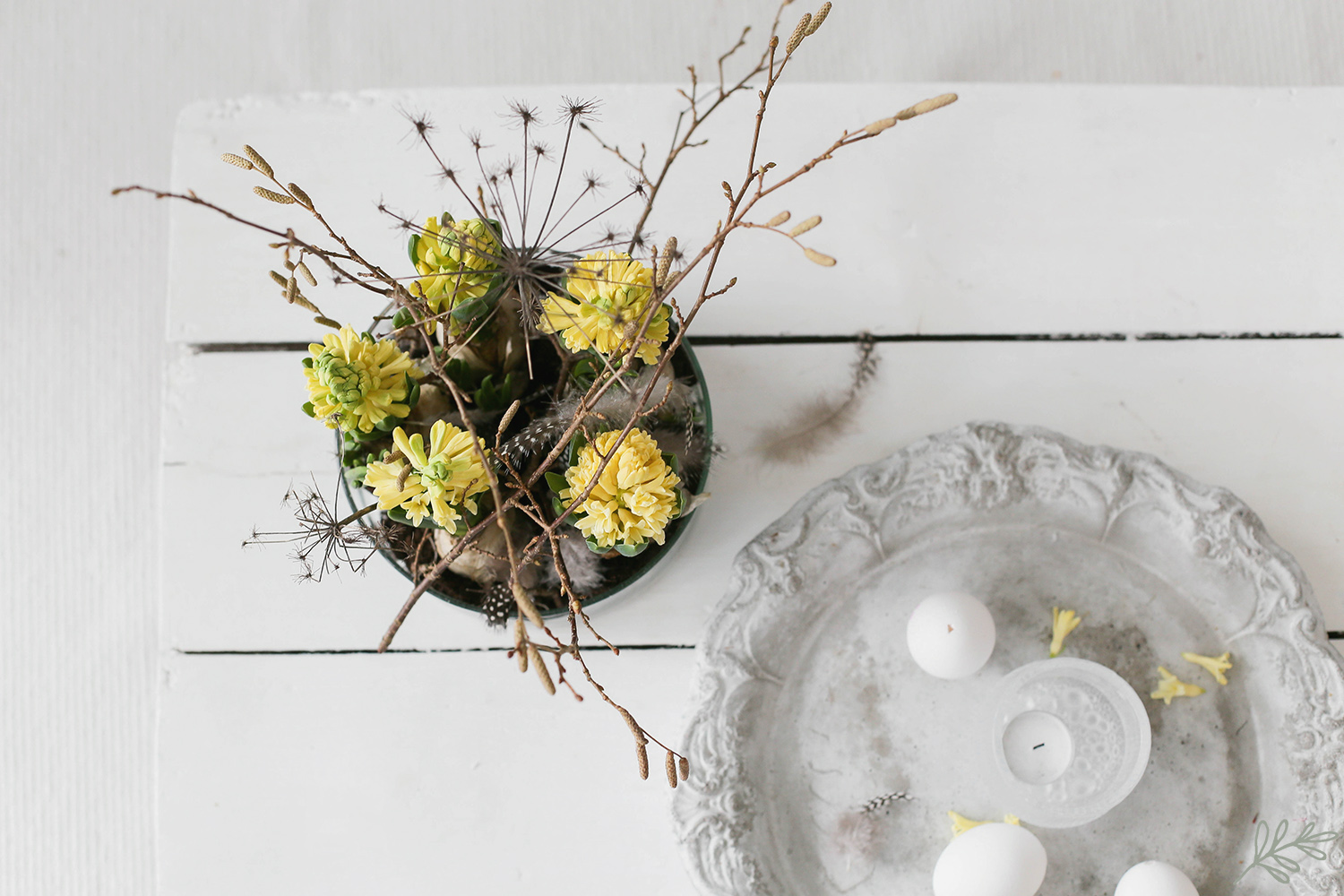 Laitoin vain yksinkertaisuudessaan multapaakut jalalliseen kulhoon ja asettelin perään lepän oksia. Erittäin yksinkertaista, mutta silti ihanan keväistä puuhasteltavaa.
