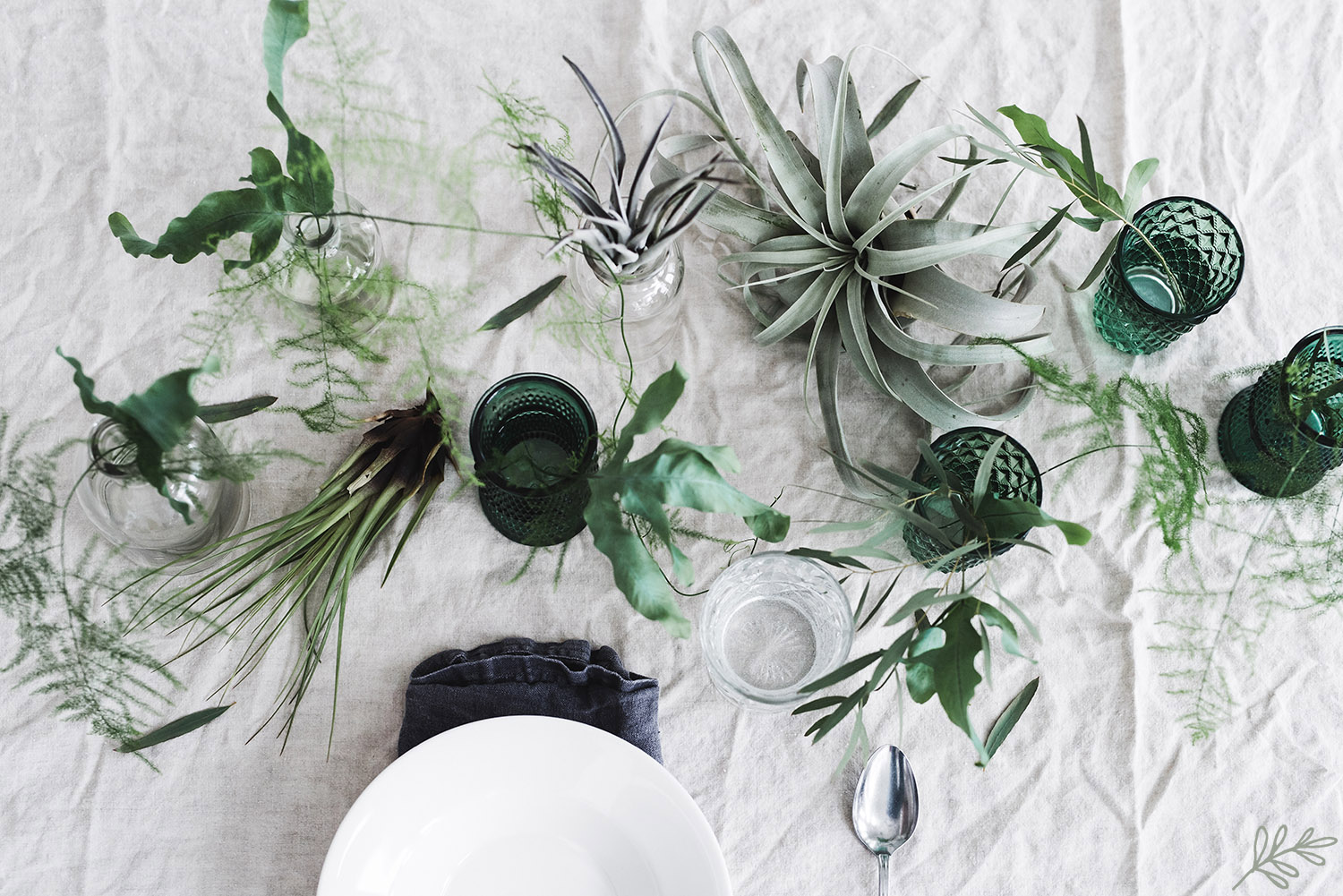 I’d such a beautiful styling and photoshoot day with Katri Haavisto, who is a very talented wedding and family photographer. Here is a fresh and lush table setting for two with green leaves and branches and air plants. All pictures Katri Haavisto Photography. 💚🌿