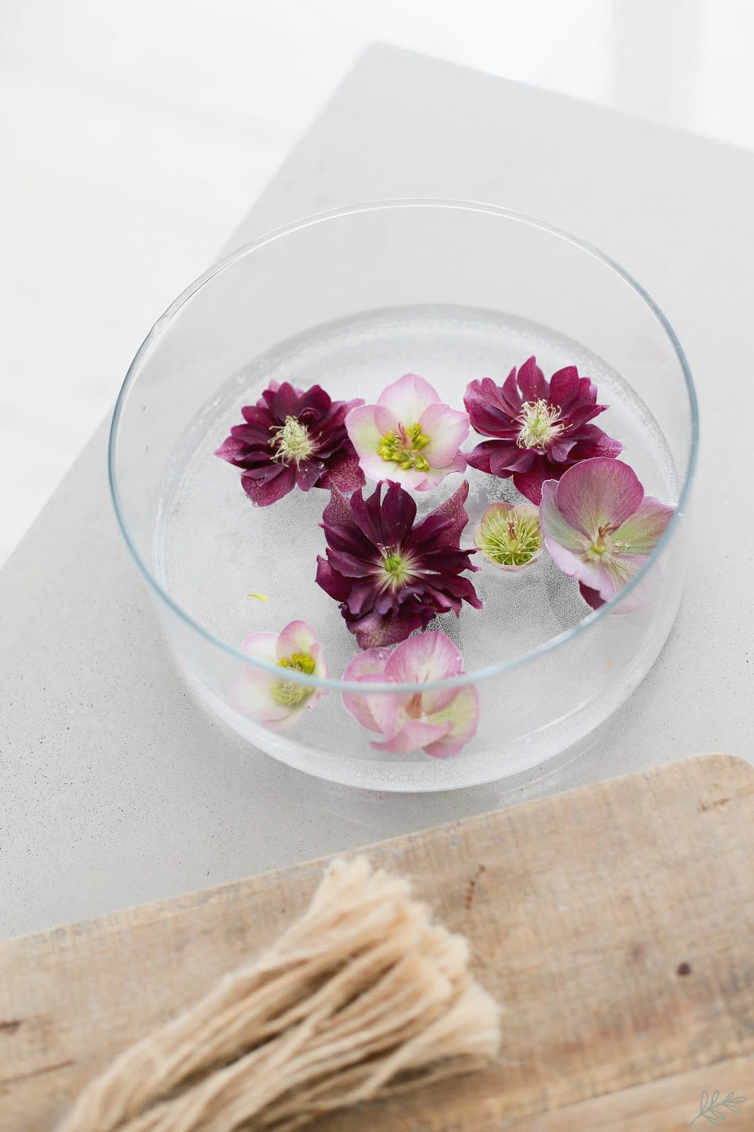 Nyt seuraa taas yksi maailman helpoin kukka-asetelma. Nimittäin kelluvat kukat. Joka kerta, kun tällaisen teen, ihastun siihen uudelleen. Miten niin helposta ja nopeasta asiasta voi saada aikaan niin kaunista?